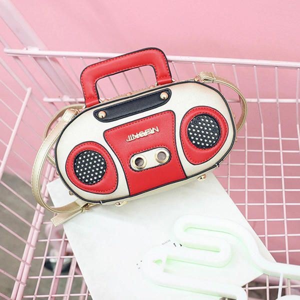 Dame Radio Stereo Skulderveske Rivet Søt Crossbody Bag