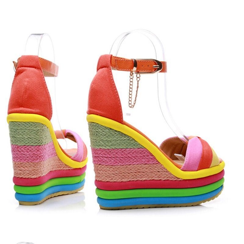Dame Regnbue Fargerik Ankelstropp Bue Knot Spenne Plattformsandaler