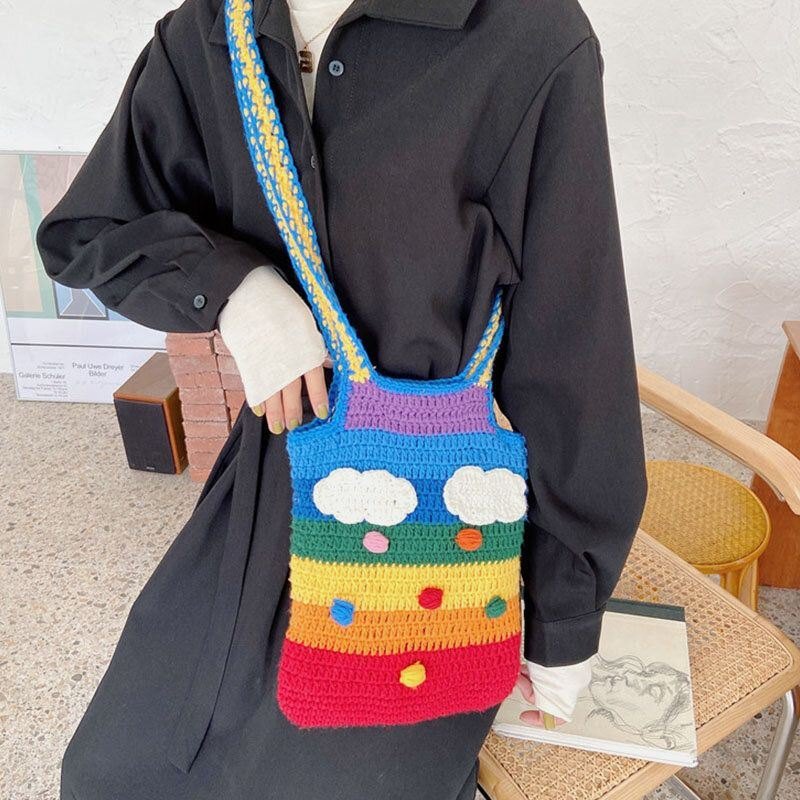 Dame Regnbuestripe Tegneserie Søt Uformell Ull Strikket Veske Håndveske Tote Crossbody Bag