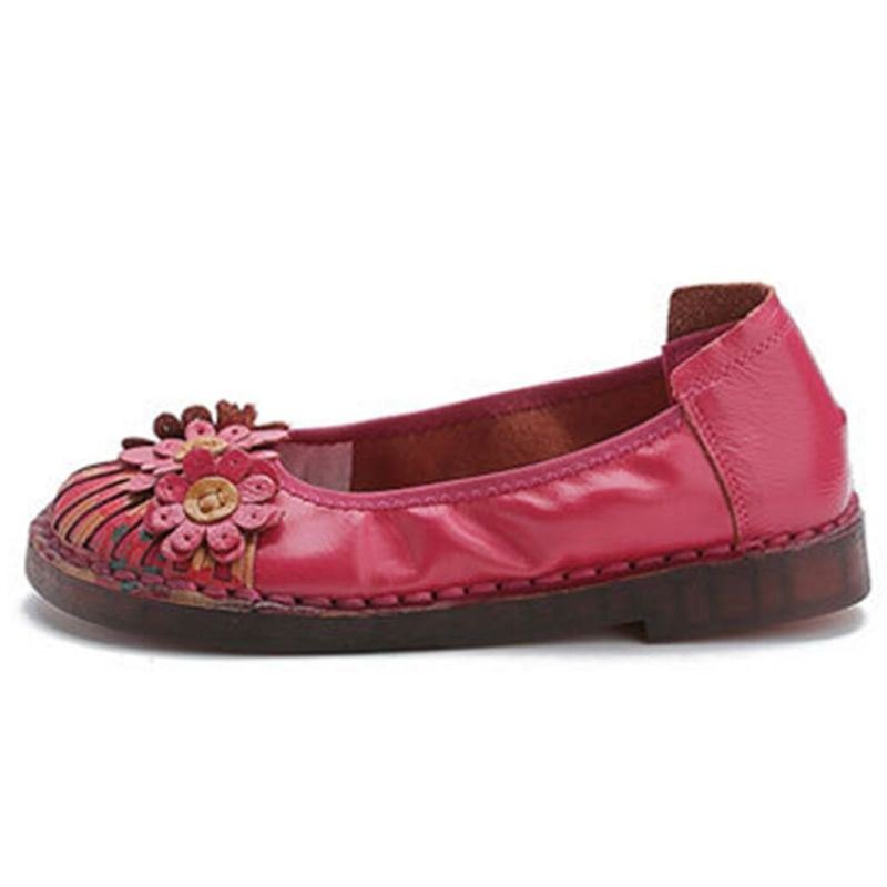 Dame Retro Blomster Dekor Håndlaget Søm Non Slp Soft Loafers