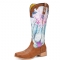 Dame Retro Blomstertrykk Firkantet Toe Slip-on Cowboy Boots