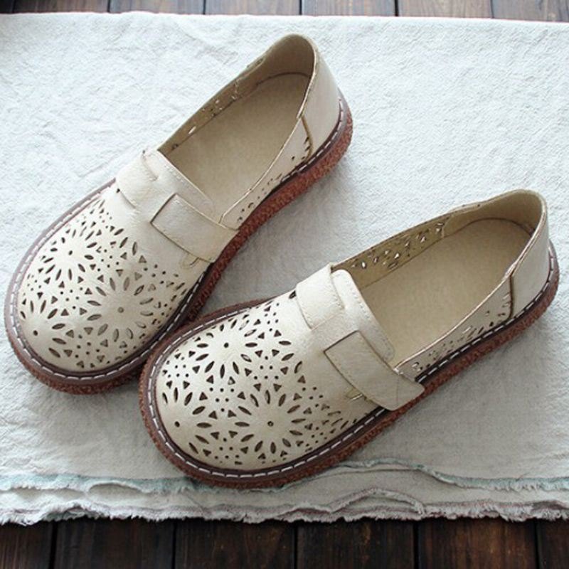 Dame Retro Casual Slip On Rund Toe Pustende Slitesterke Loafers Sko