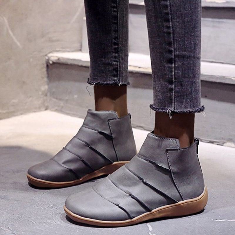 Dame Retro Sklibestandig Myk Såle Ryggglidelåssøm Flate Ankelstøvletter
