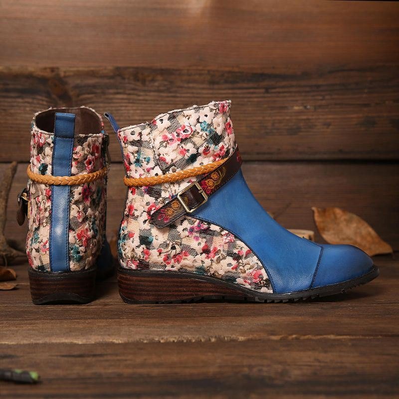 Dame Retro Spenne Veving Stitching Ankel Boots