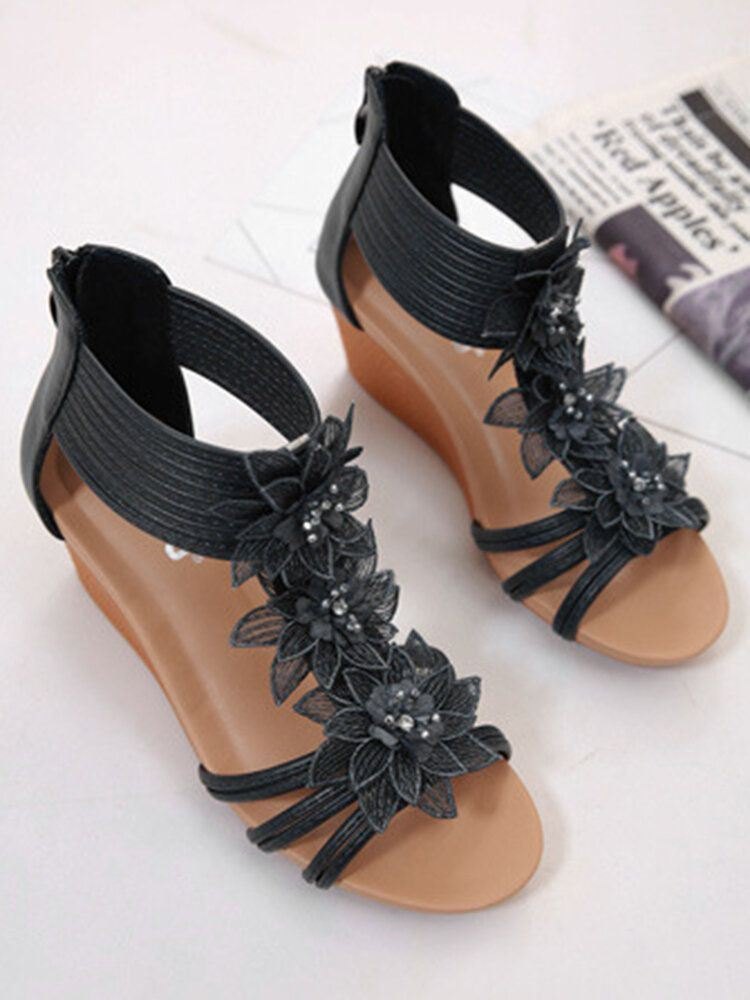 Dame Romersk Stil Blomsterdekorasjon Comfy Kiler Hæl Sandaler