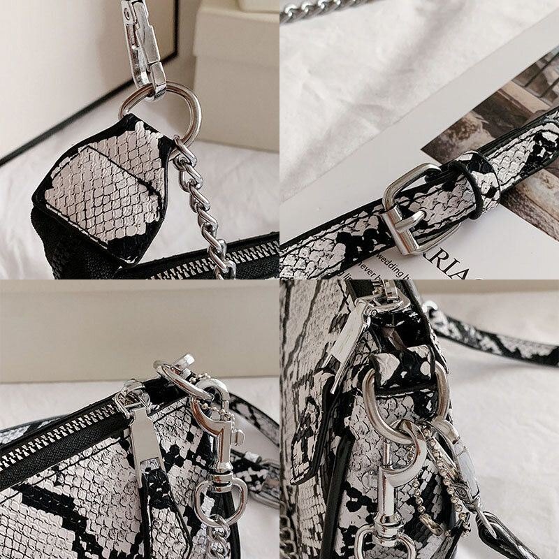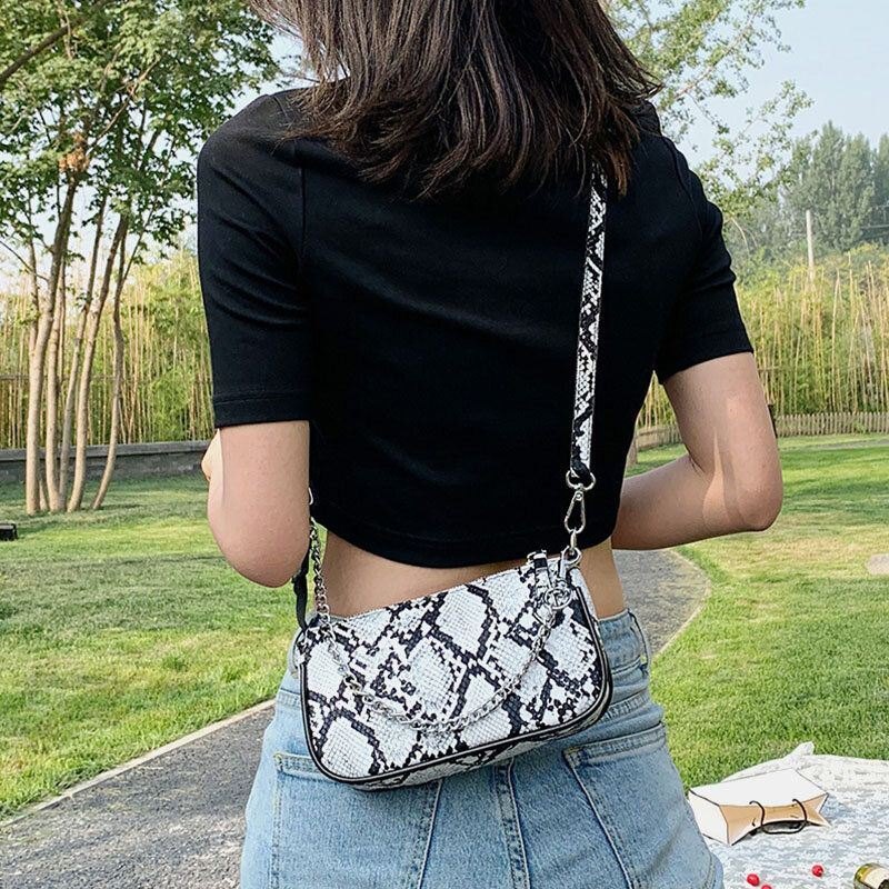 Dame Slange-skinn Patternn Ensfarget Uformell Mote Skulderveske Cross Body Bag