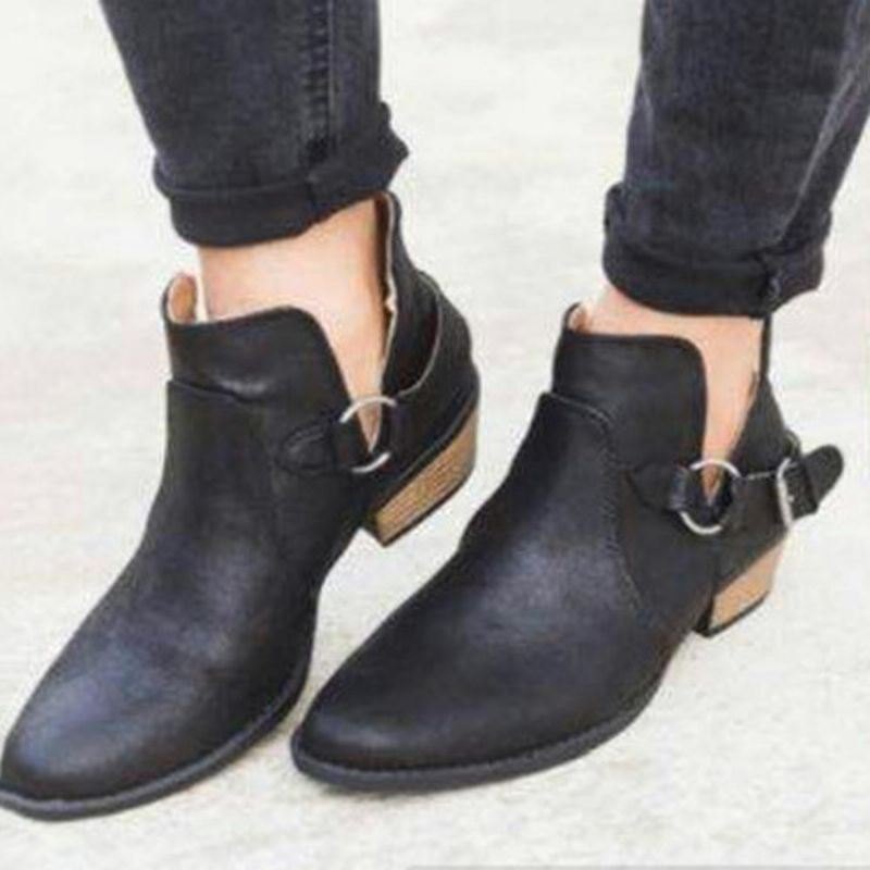 Dame Stor Størrelse Metall V-form Slip On Lavhæl Mote Ankelstøvletter