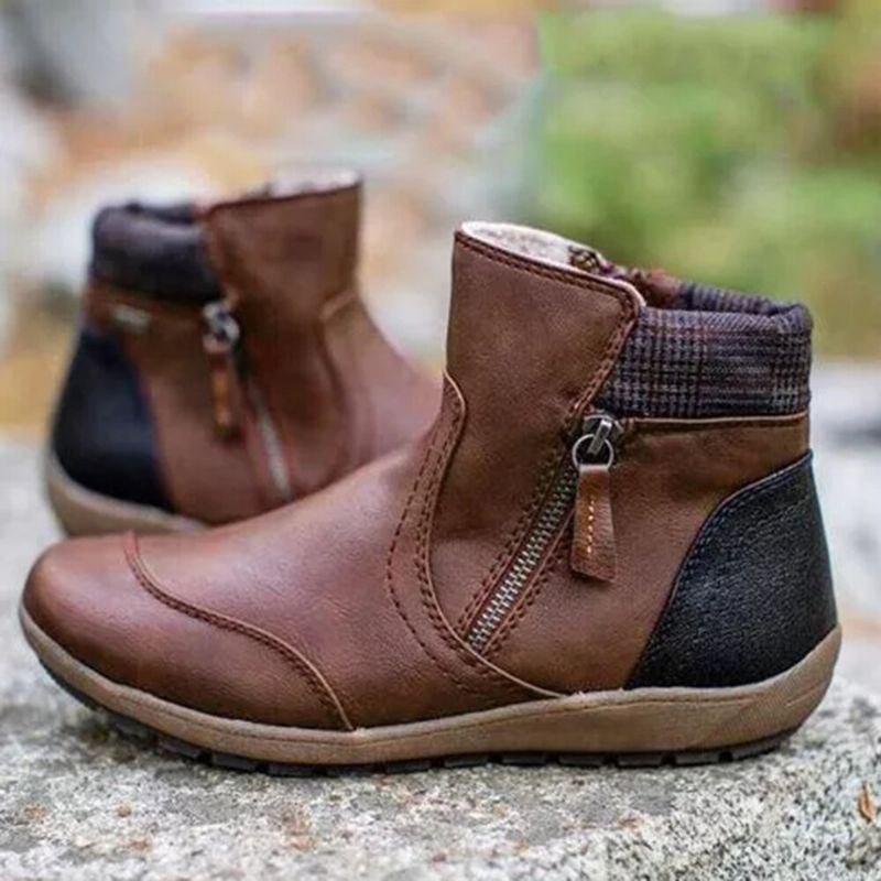 Dame Stor Størrelse Skjøting Rund Tå Side Glidelås Flate Ankelstøvler