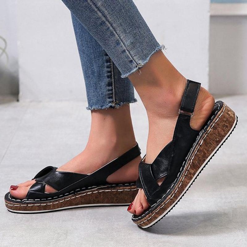 Dame Stor Størrelse Sklisikre Comfy Solid Summer Wedge Sandaler