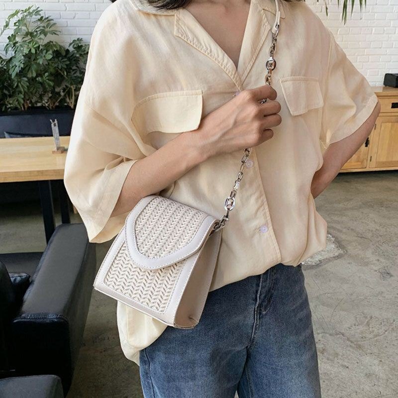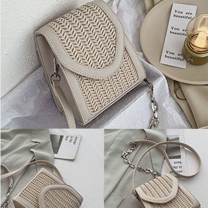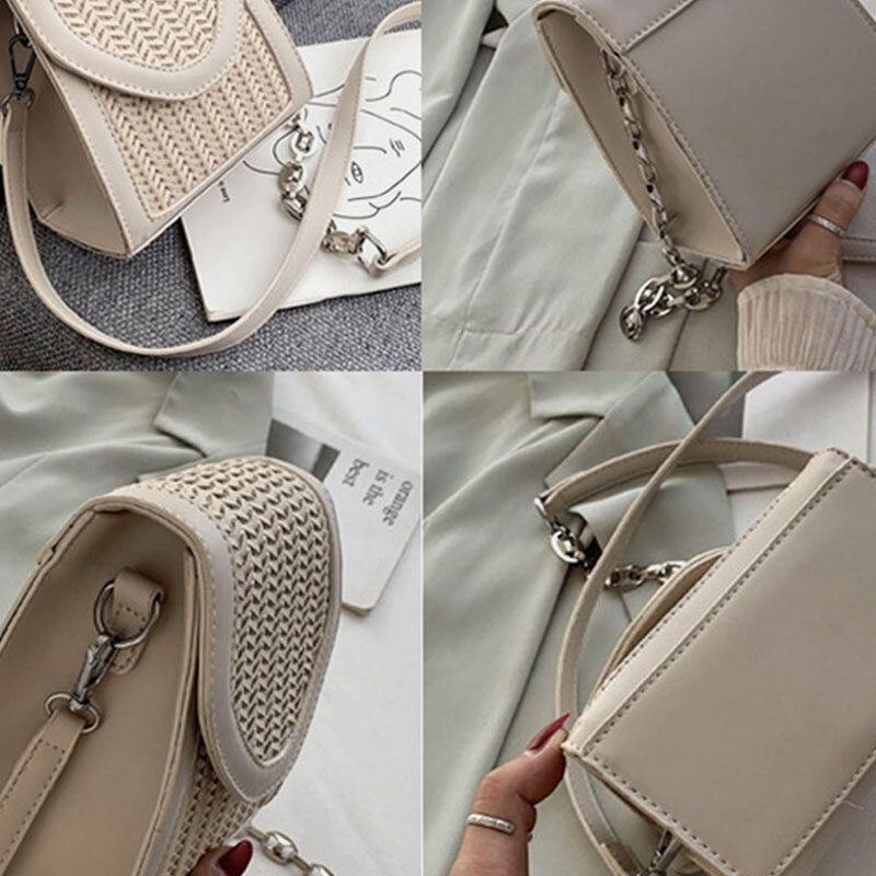 Dame Summer Flap Straw Chain Crossbody Bag Skulderveske