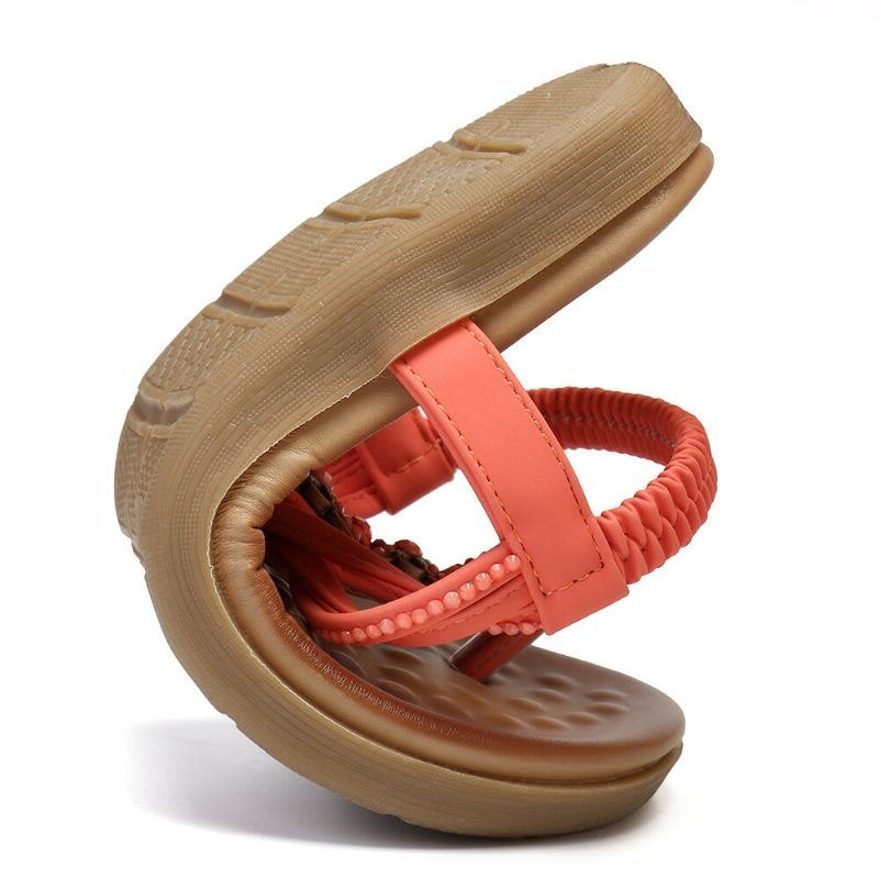 Dame T-stropp Beading Elastisk Bånd Slip On Casual Beach Sommer Flat Sandaler