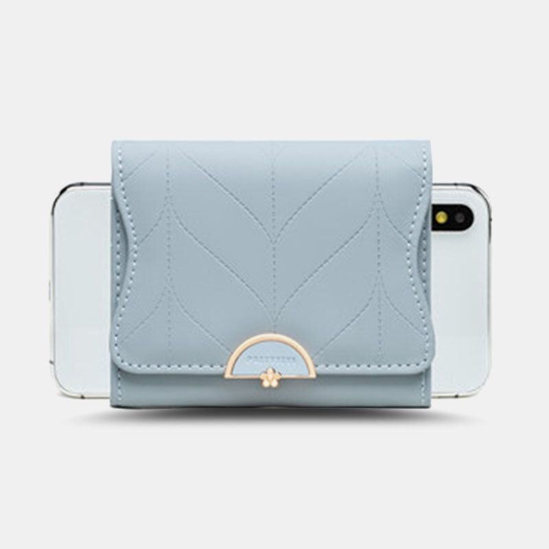 Dame Trifold Kort Lommebok Bladlinje Design Enkel Sammenleggbar Pengeklemme Multi-kort Spor Kortholder