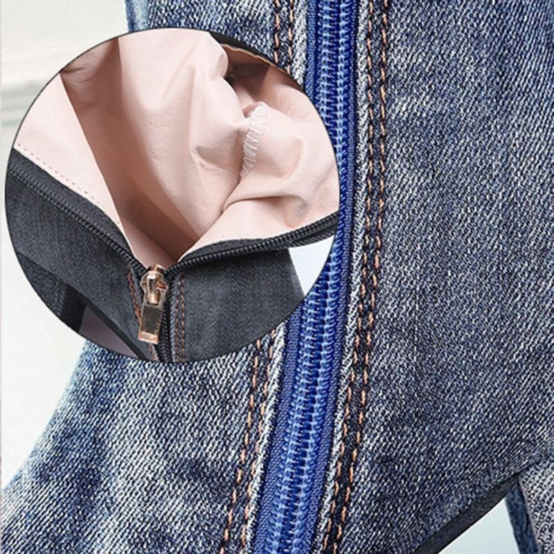 Dame Uformell Sideglidelås Spiss Tå Tykk Hæl Midtkalv Dongeristoffstøvler