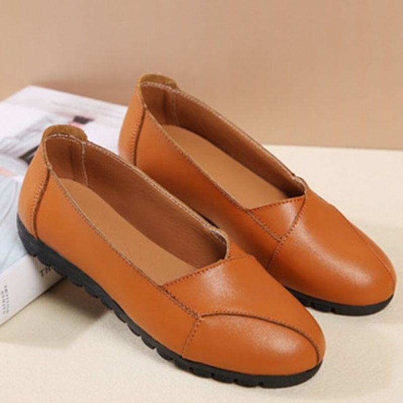 Dame Uformelt Pustende Lær Halvert Belte Slip-on Myk Såle Loafers