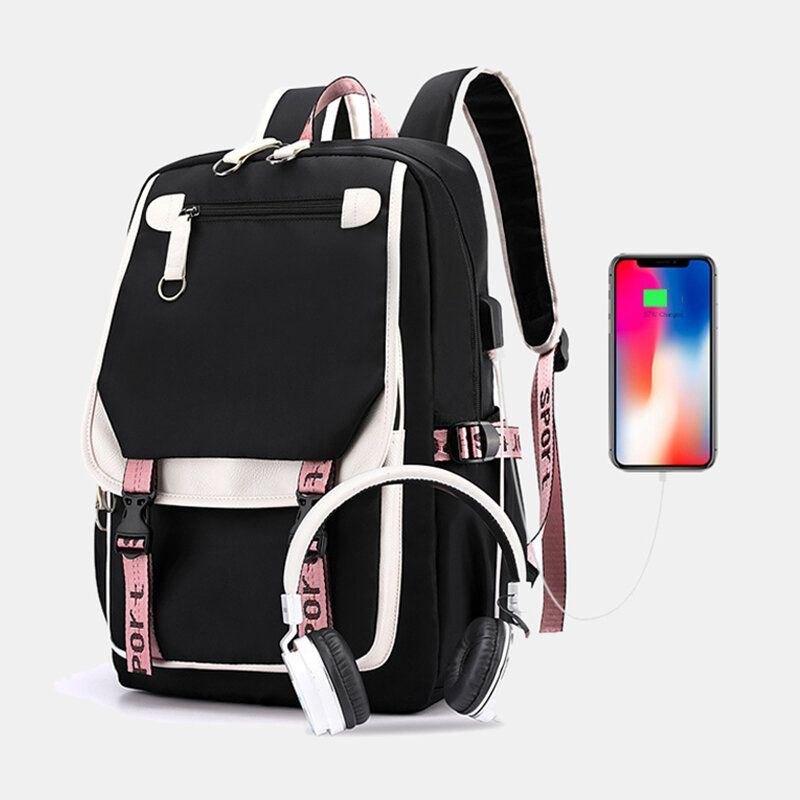 Dame Utskrift Usb Lading Stor Kapasitet Ryggsekk Student Skoleveske