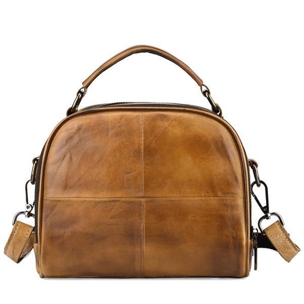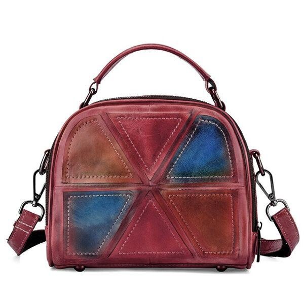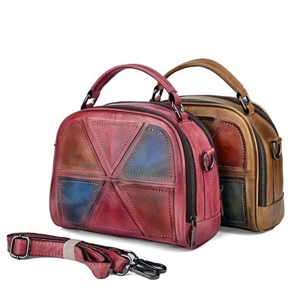 Dame Vintage Ekte Skinn Håndlaget Børstefarge Håndvesker Sying Crossbody-vesker