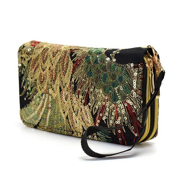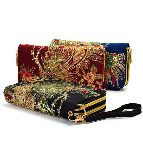 Damebrodert Nasjonalstil Lommebok 6 Tommer Telefonveske