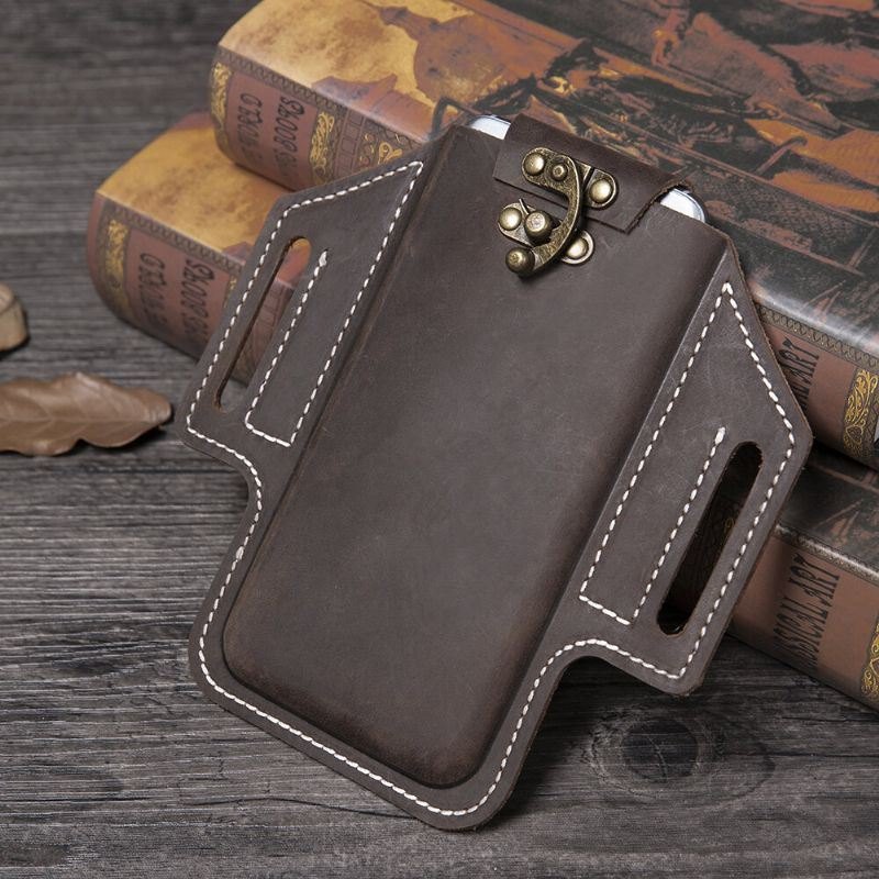 Edc-veske I Ekte Skinn For Herre Midjepakke 6.3 Tommers Telefonveske Med Belteløkker