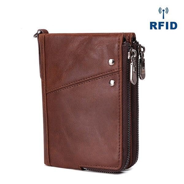 Ekte Lær 10-korts Lommebok For Herre Med Dobbel Glidelås Myntveske