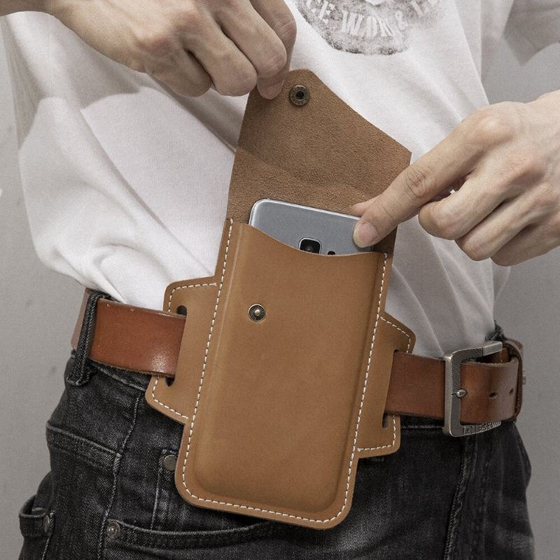 Ekte Lær Vintage 6.3 Tommers Telefonveske For Herre Belteveske