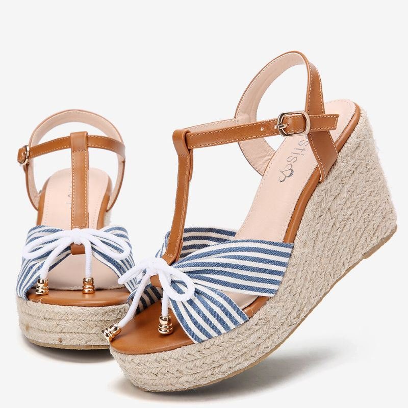Espadriller For Dame Stripete T-stropp Kryssrem Casual Beach Wedge Sandaler