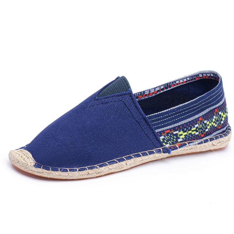 Etnisk Skjøting For Dame Fargerik Stripete Lin Komfortabel Pustende Slip On Casual Espadrille Flat Sko