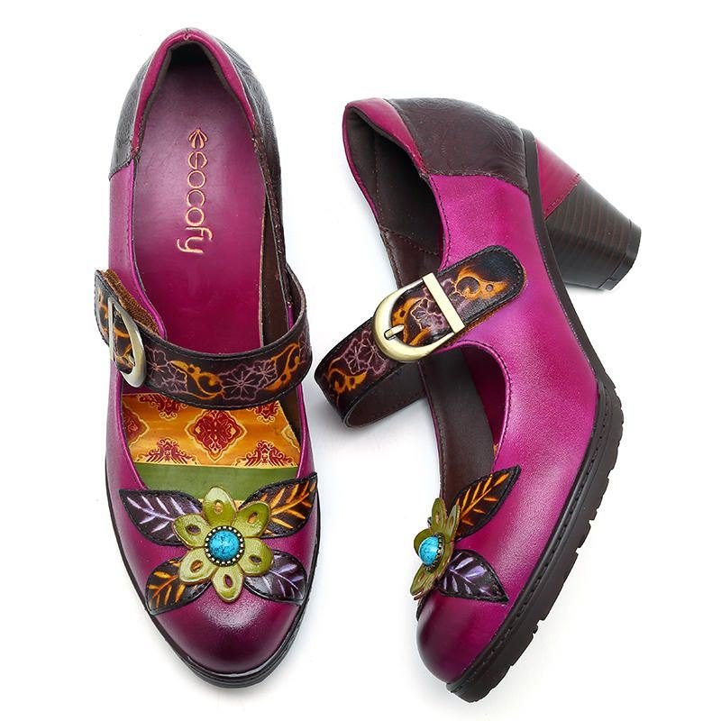 Håndlagde Floral Folkways Skinnsandaler For Kvinner