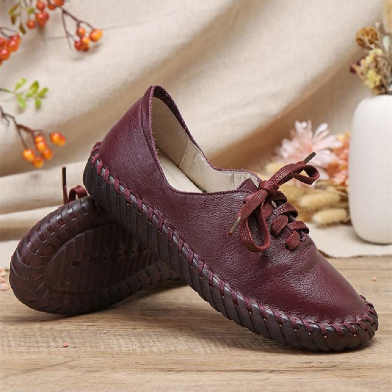 Håndsøm For Dame Ensfarget Kuskinn Behagelig Rund Tå Myke Uformelle Flater