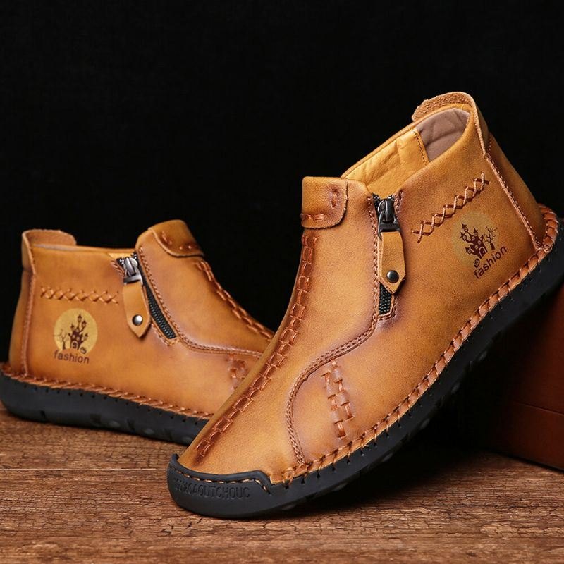 Håndsøm For Herre I Skinn Halloween-mønster Sklisikkert Tåbeskyttede Uformelle Ankelstøvletter