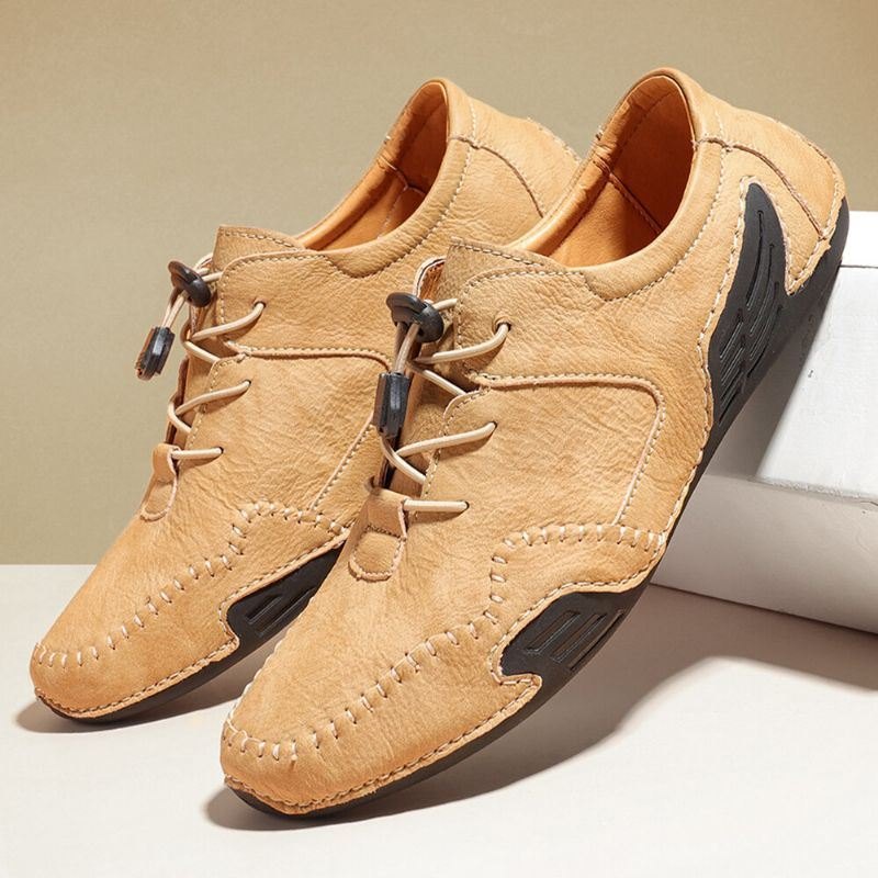 Håndsøm I Ekte Skinn For Herre Behagelig Myk Såle Sklisikker Flate Fritidssko