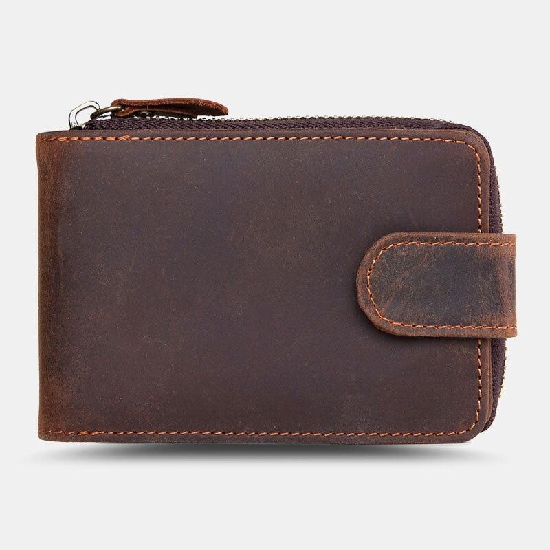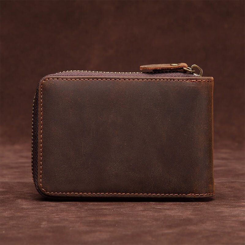 Herre Anti-magnetisk Kortholder Med 12 Kortspor. Ekte Skinn Glidelås Orgel Lommebok Førerkortetui