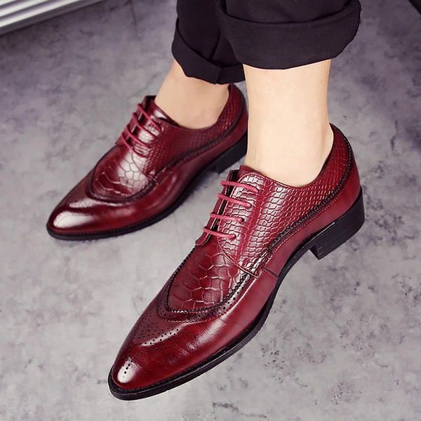 Herre Brogue Stil Ekte Skinn Spissede Forretningsformelle Sko