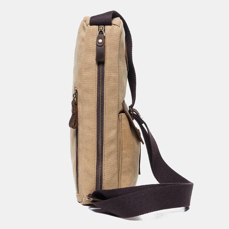 Herre Canvas Patchwork Brystveske I Ekte Skinn