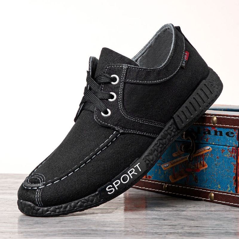 Herre Canvas Pustende Behagelig Myk Såle Sklisikker Snøring Uformelle Gamle Peking-sko