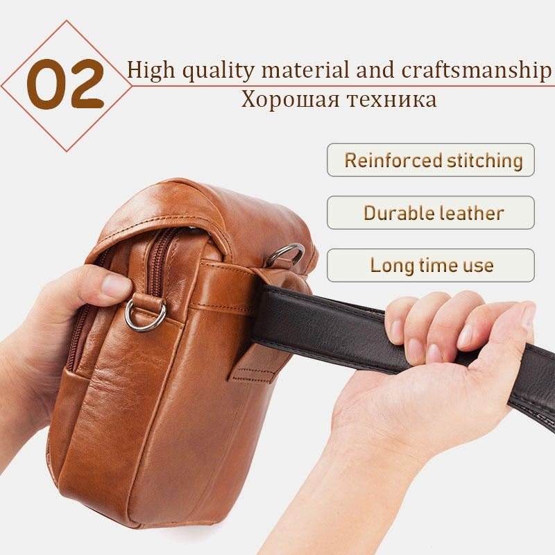Herre Crossbody-veske I Ekte Skinn Skulderveske Telefonveske Midjebelteveske For Utendørs