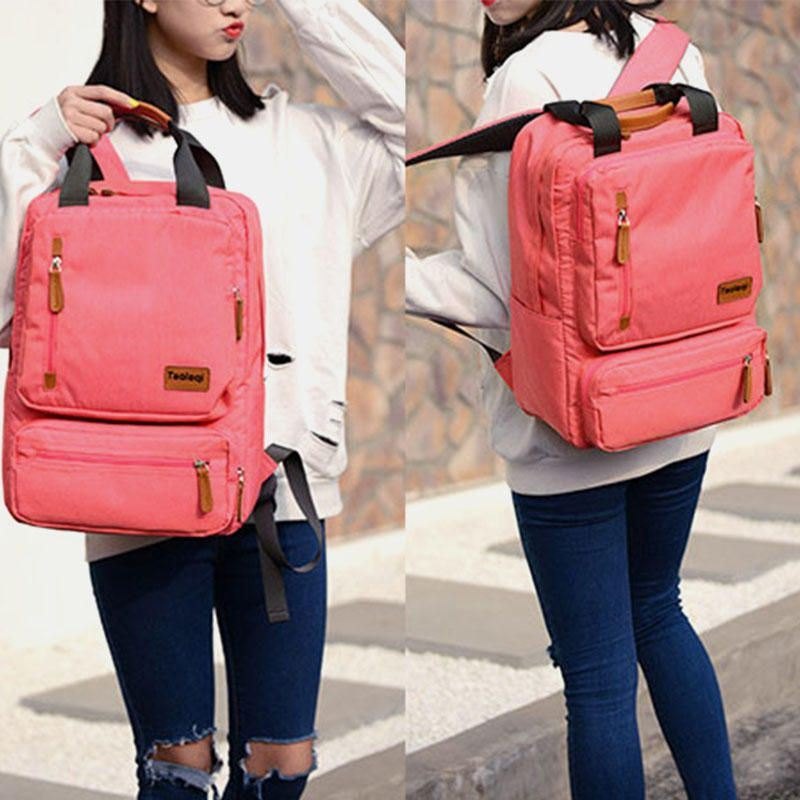 Herre Dame Mote Stor Kapasitet Multi-lomme Pure Color Ryggsekk