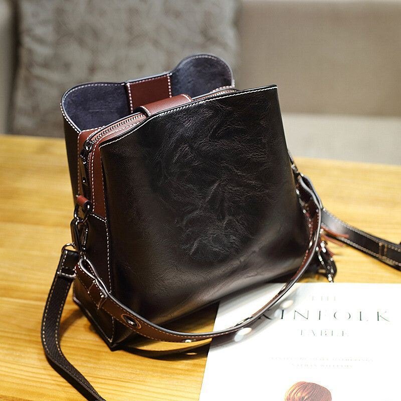 Herre Dame Vintage Kunstskinn Crossbody-veske Skuldervesker Bucket Bag Crossbody-veske