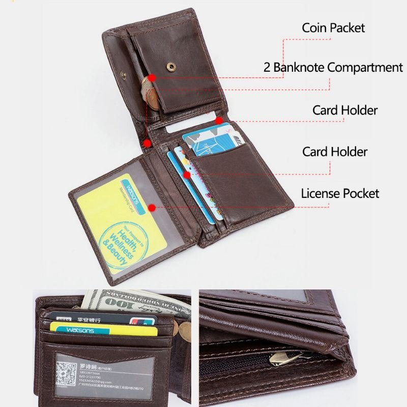 Herre Ekte Lær Anti-tyveri Vintage Kort Kortholder Med Flere Kort Myntpung Bifold Pengeklips Lommebøker