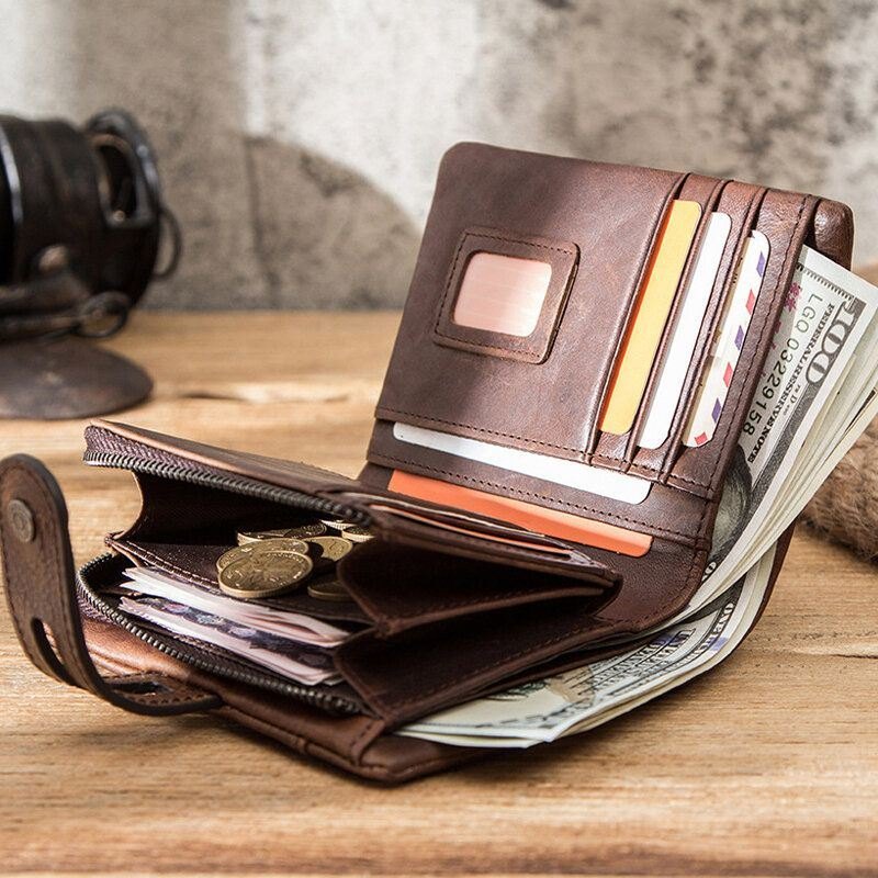 Herre Ekte Lær Anti-tyveri Vintage Retro Visittkortspor Kortholder Lommebok I Skinn