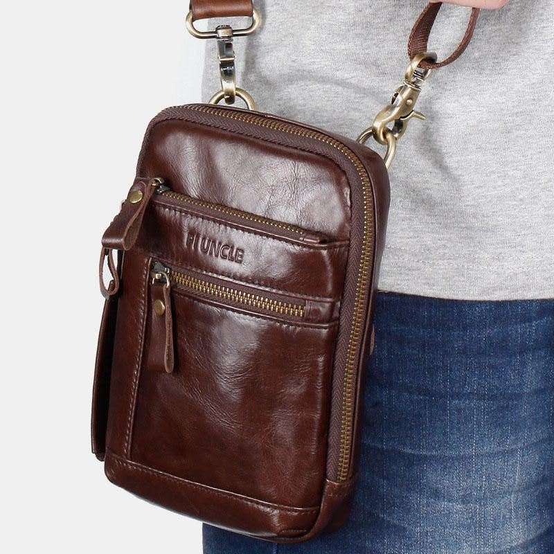 Herre Ekte Lær Flerlags Crossbody-veske Midjebelteveske Skulderveske Telefonveske