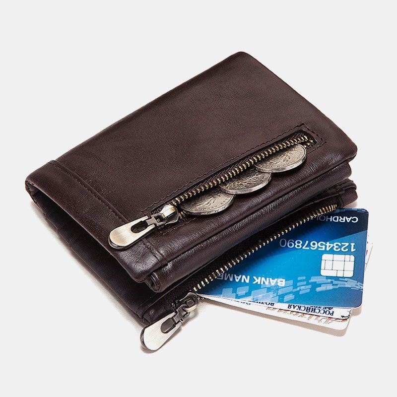 Herre Ekte Skinn Anti-tyveri Glidelås Multi-spor Kortholder Lommebok