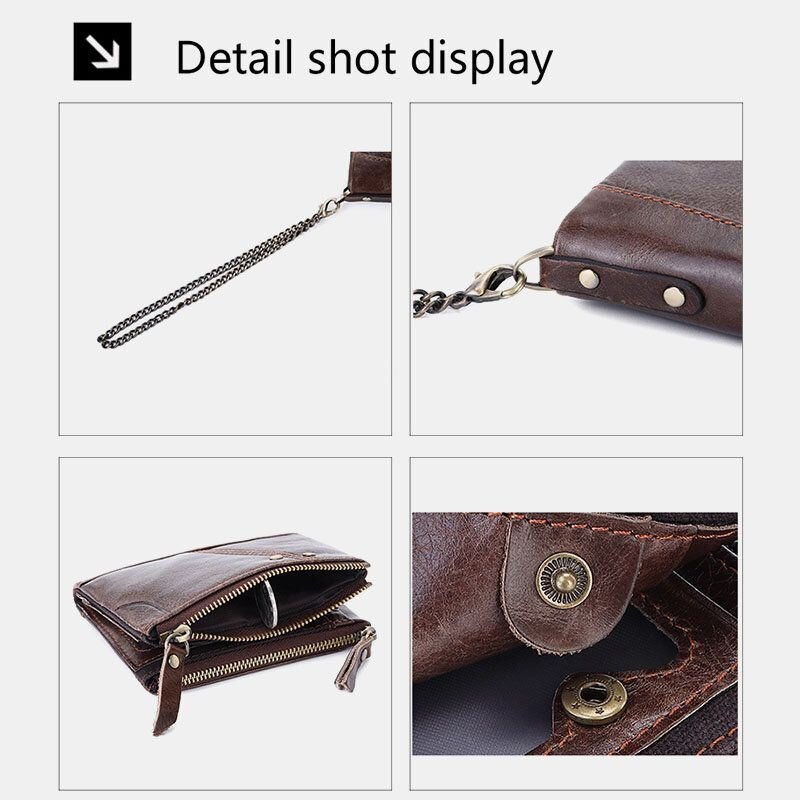 Herre Ekte Skinn Blokkerer Anti-tyveri Retro Business Dobbel Glidelås Kortholder Lommebok