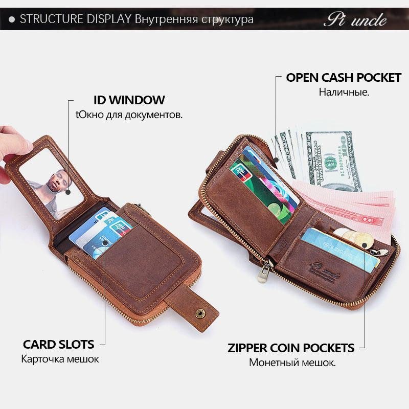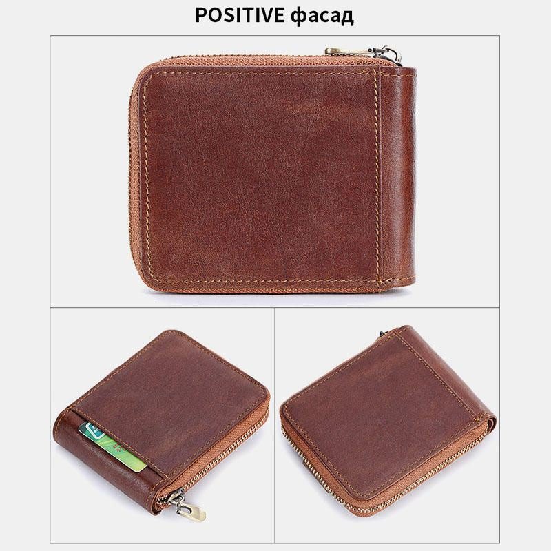 Herre Ekte Skinn Blokkeringslommebok Vintage Organizer Glidelåslommebok