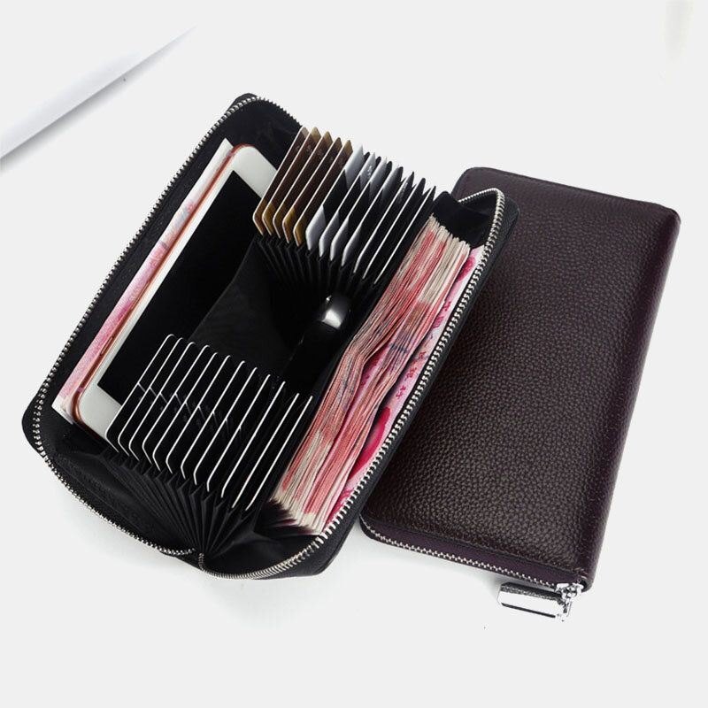 Herre Ekte Skinn Flerkortspor Telefonveske Nøkkelveske Pengeklips Lommebok