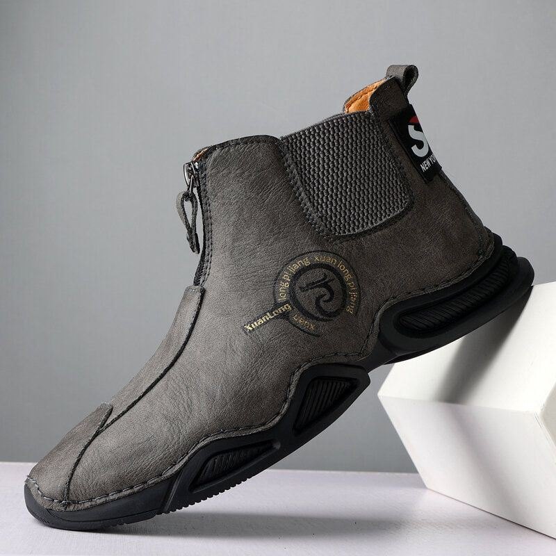 Herre Ekte Skinn Håndsøm Pustende Myk Såle Varmfôret Glidelåsstøvler Fritidssko