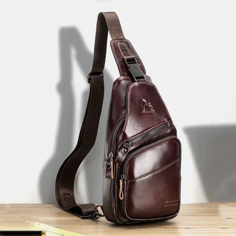 Herre Ekte Skinn Hasp Hodetelefonhull Stor Kapasitet Vintage 6.5 Tommers Telefonveske Brystveske Crossbody-veske Skulderveske