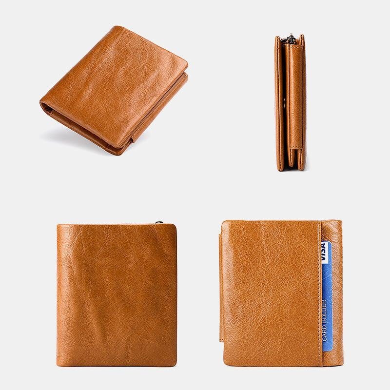 Herre Ekte Skinn Kuskinn Retro Business Trifold Multi-slot Myntveske Kortholder Lommebok