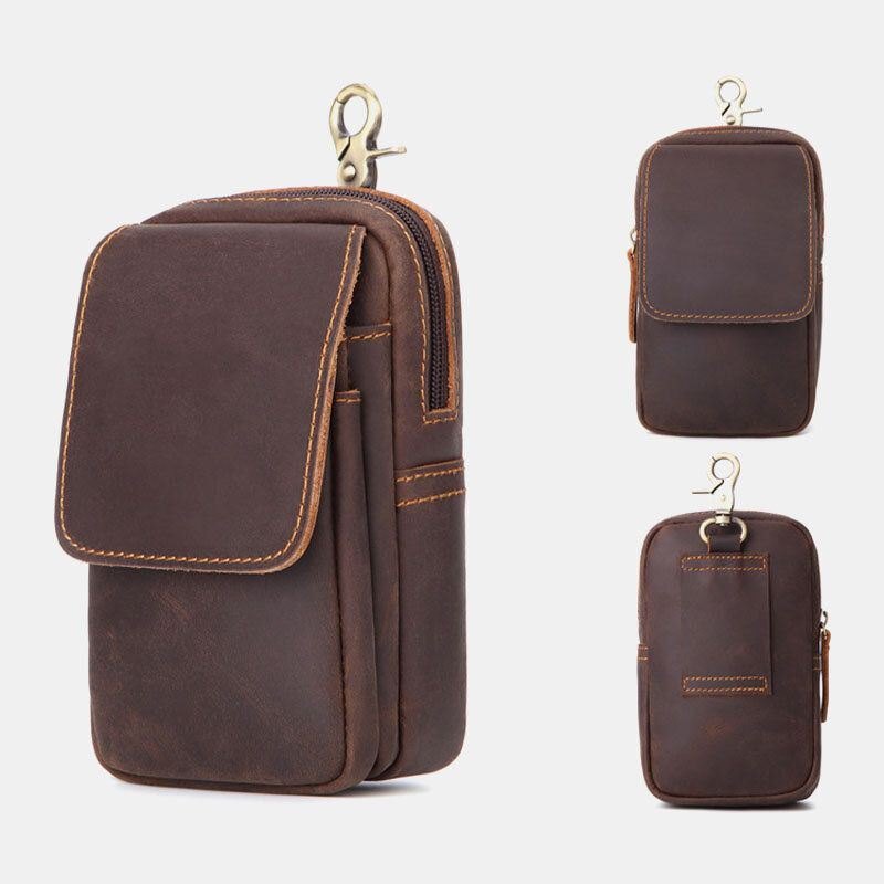 Herre Ekte Skinn Multi-spor Retro Multifunksjonell Lommebok Telefonveske Midjeveske