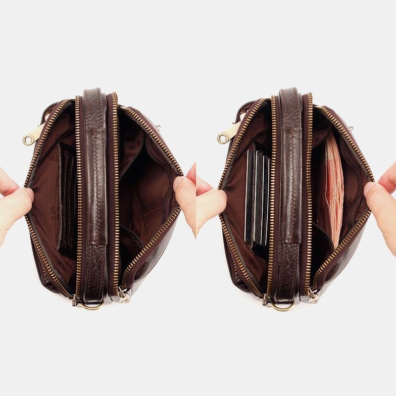Herre Ekte Skinn Multifunksjon Multi-bære 4 Kortspor Crossbody Bag Midjeveske