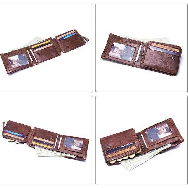 Herre Ekte Skinn Multifunksjonell Myntveske Med Stor Kapasitet 10 Kortspor Trifold Lommebok